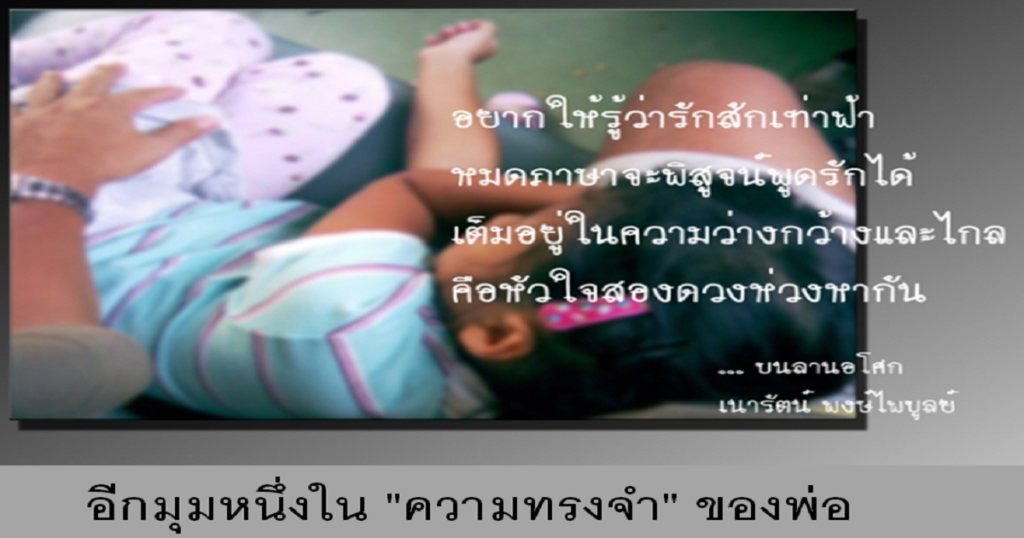 วันหนึ่ง … ถ้าหนูตาบอด ผู้ชายคนนี้ … จะเป็นหมานำทาง หมาตัวนี้ … จะนั่งลง มันจะกระซิบหนูเบาๆ มันจะเล่าทุกอย่างที่เห็นให้หนูฟัง หมาตัวนี้ … จะนั่งลง ด้วยนิ้วของมัน มันจะวาดภูเขา วาดทะเล ลงบนฝ่ามือเล็กๆของหนู วันหนึ่ง … ถ้าหนูไม่มีขา ผู้ชายคนนี้ … จะเป็นม้าให้หนูขี่ ม้าตัวนี้ … จะพาหนูท่องโลกไปบนหลังของมัน ม้าตัวนี้ … จะพาหนูออกล่าฝันของหนูบนทุ่งหญ้าหลังดินแดนแห่งแสงตะวัน (แสงตะวัน … ที่ไม่มีวันดับในใจของหนู) วันหนึ่ง … ถ้าหนูอยากร้องเพลง … เพลงที่ไม่มีใครต้องการฟัง ผู้ชายคนนี้ … จะเป็นควาย ควายตัวนี้ … จะฟังทุกเพลงของหนู … ตลอดไป … ผู้ชายคนนี้ … จะเป็นก้อนหิน จะเป็นไม้หมอน เพียงถ้าเธออยากเป็นรถไฟ เพื่อเธอ … เขาจะเป็นสายลม … เพียงถ้าเธออยากเป็นเครื่องบิน เขาจะเป็นสายน้ำ … […]